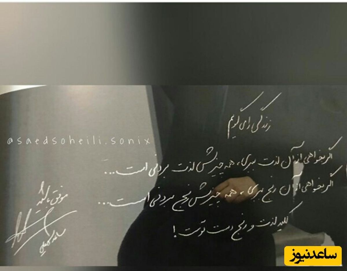 تصویری از امضا و نوشته زیبا ساعد سهیلی را مشاهده بفرمایید. علاقمندان برای دنبال کردن اخبار و حواشی مربوط به بازیگران می توانند با ما همراه باشند.