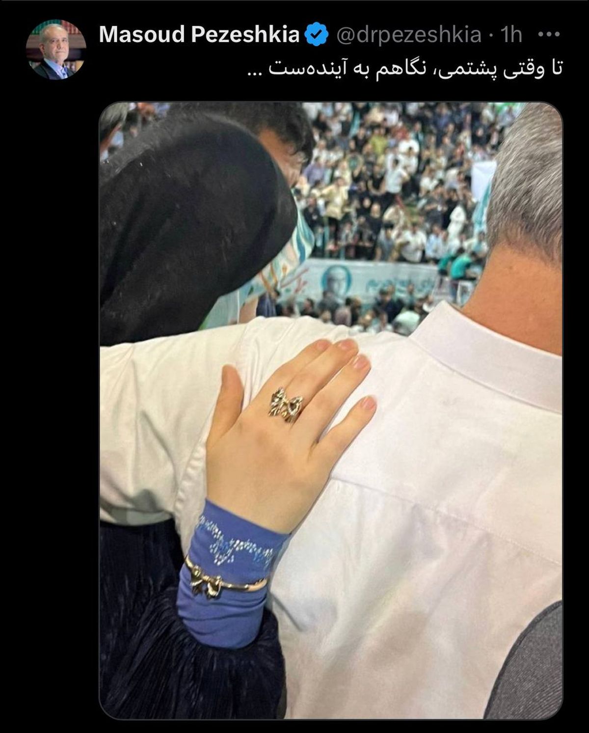 در دوران انتخابات، عکسی از مسعود پزشکیان به همراه دخترش در یکی از میتینگهای انتخاباتی منتشر شد. در توصیف این عکس نوشته شده: «تا وقتی پشتمی؛ نگاهم به آیندهست…»