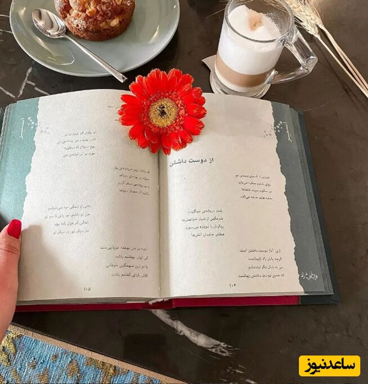 تصویری از میز خانم مینا مختاری همسر بازیگر کشورمان بهرام رادان را مشاهده می کنید که با شعر عاشقانه ای از فروغ فرخزاد و سبکی زیبا چیده شده است.