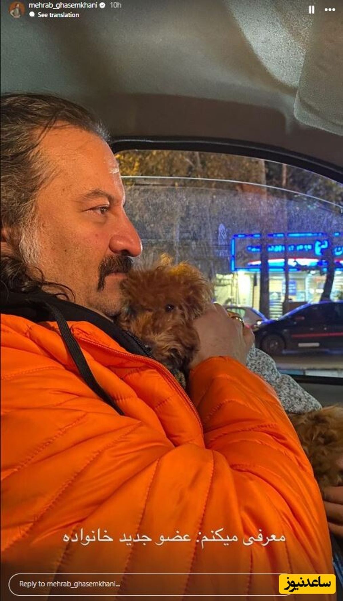 مهراب قاسمخانی از یک عضو جدید خانواده رونمایی کرد | یک پشمالو با جذابیت خاص!