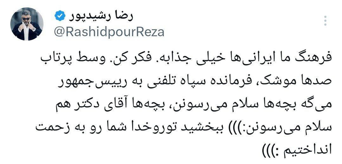 واکنش طنزآمیز رضا رشیدپور با تماس فرمانده سپاه با پزشکیان | ویدئو این تماس وایرال شد