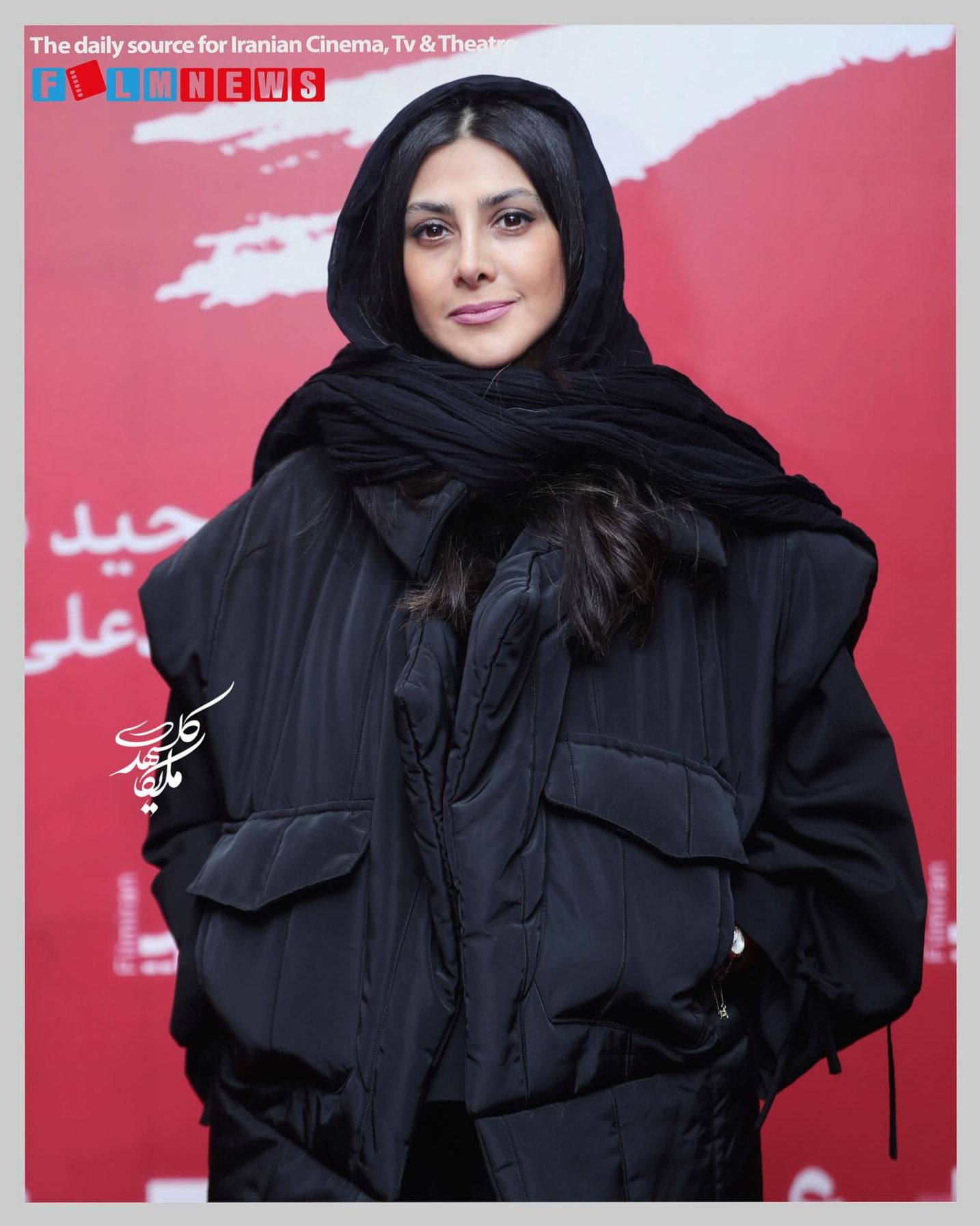 آزاده صمدی مشکی پوش شد| استایل زمستانی آزاده صمدی در مراسم اکران یک فیلم