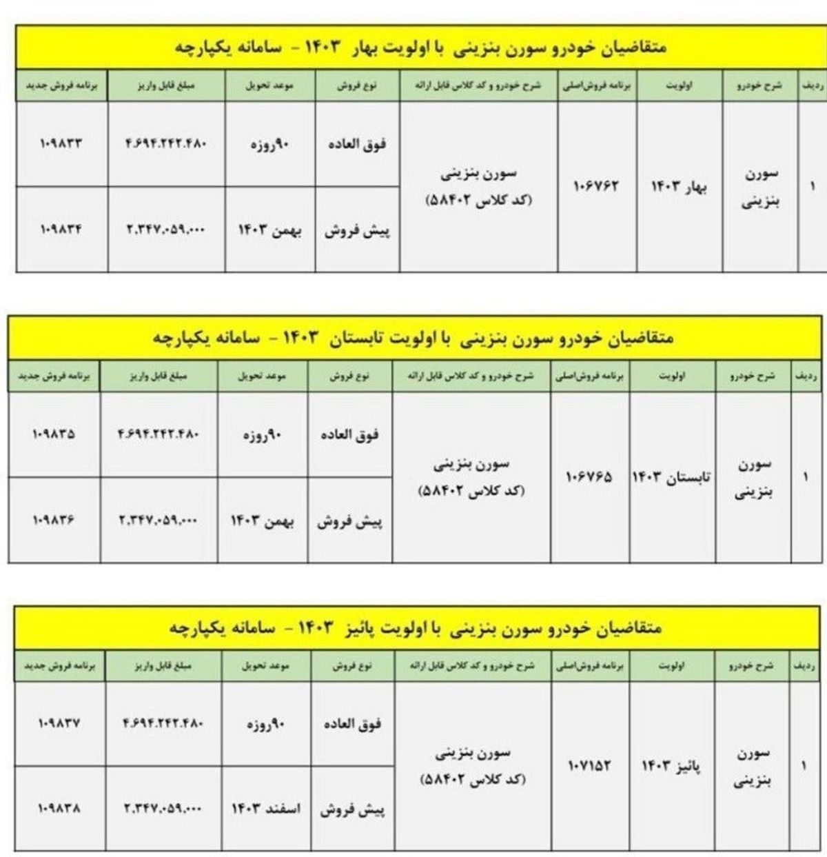 شرایط فروش سورن پلاس بنزینی ویژه منتخبین سامانه یکپارچه خودروهای داخلی در مردادماه 1403 از سوی شرکت ایران خودرو اطلاع رسانی شد.