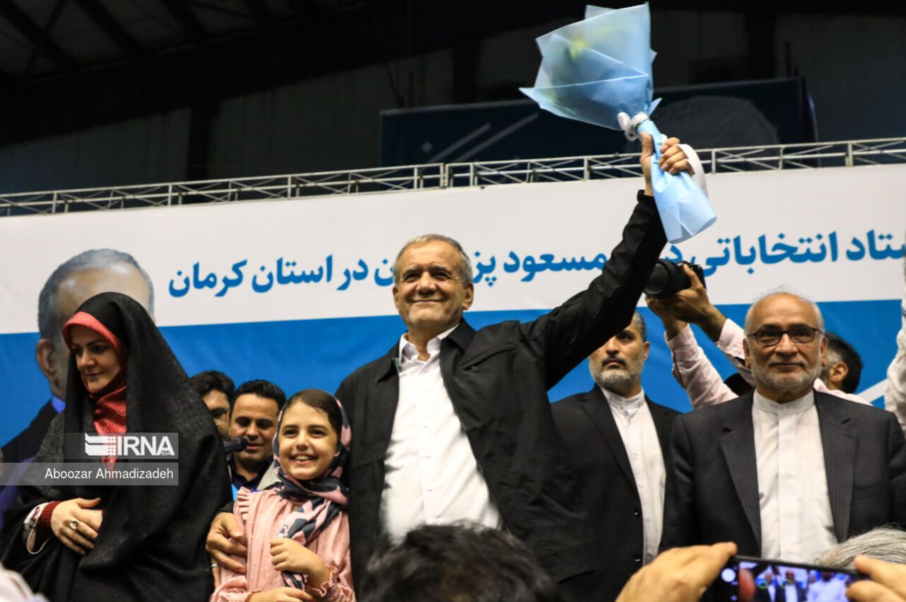 مسعود پزشکیان خانواده را وارد میتینگ انتخاباتی کرد | تصویری از دختر و نوه های مسعود پزشکیان در میتینگ انتخاباتی