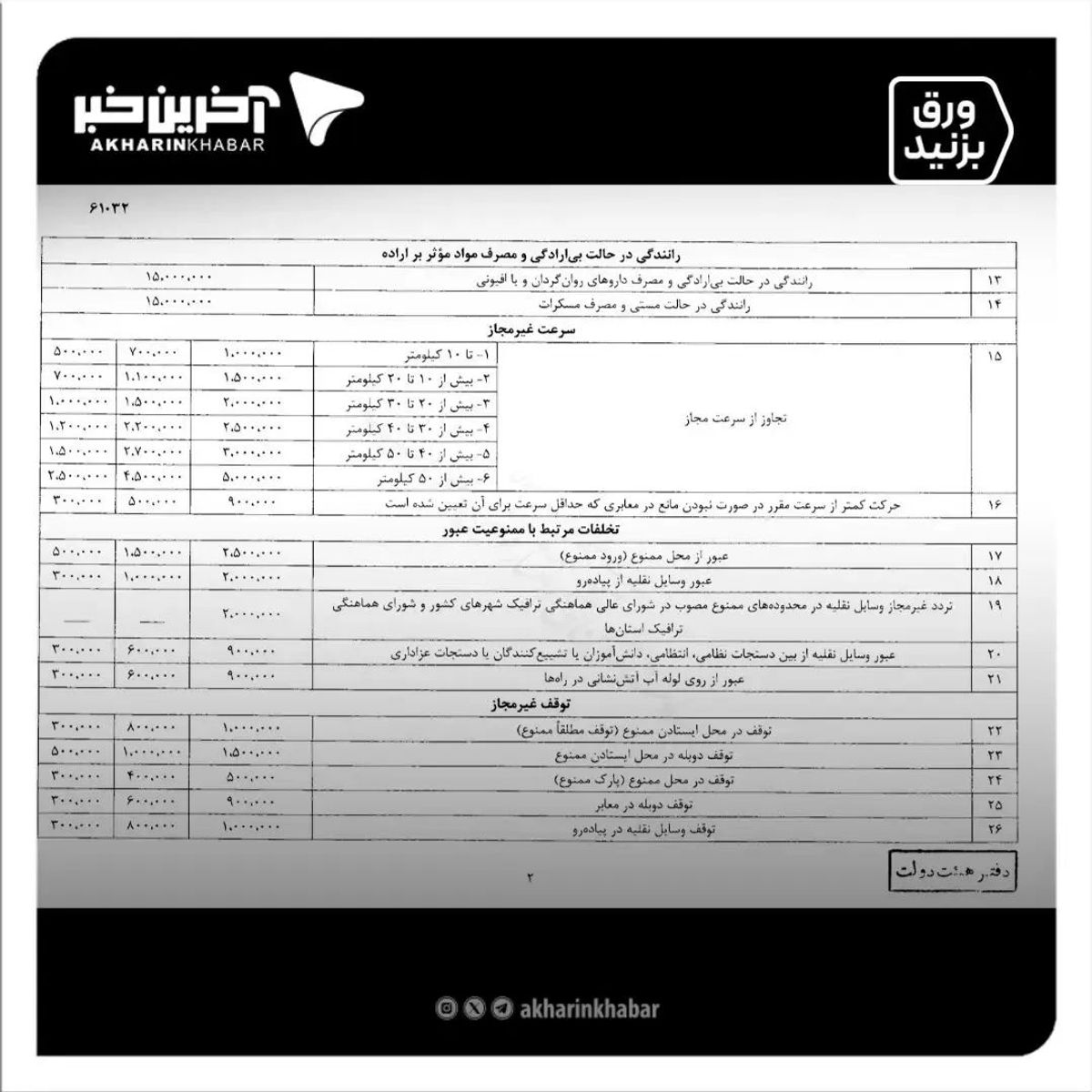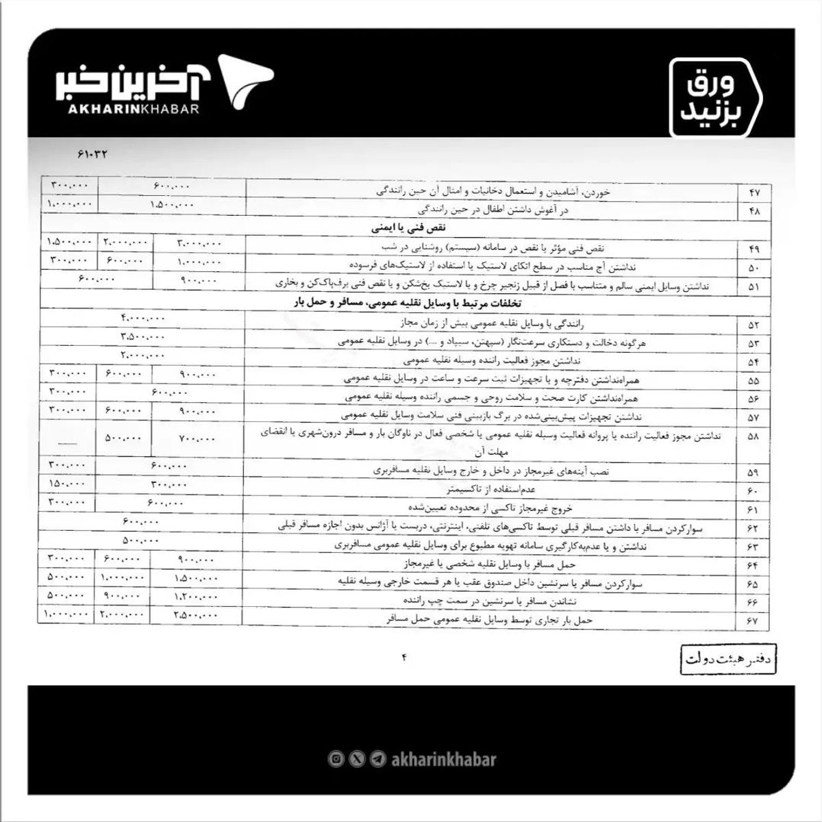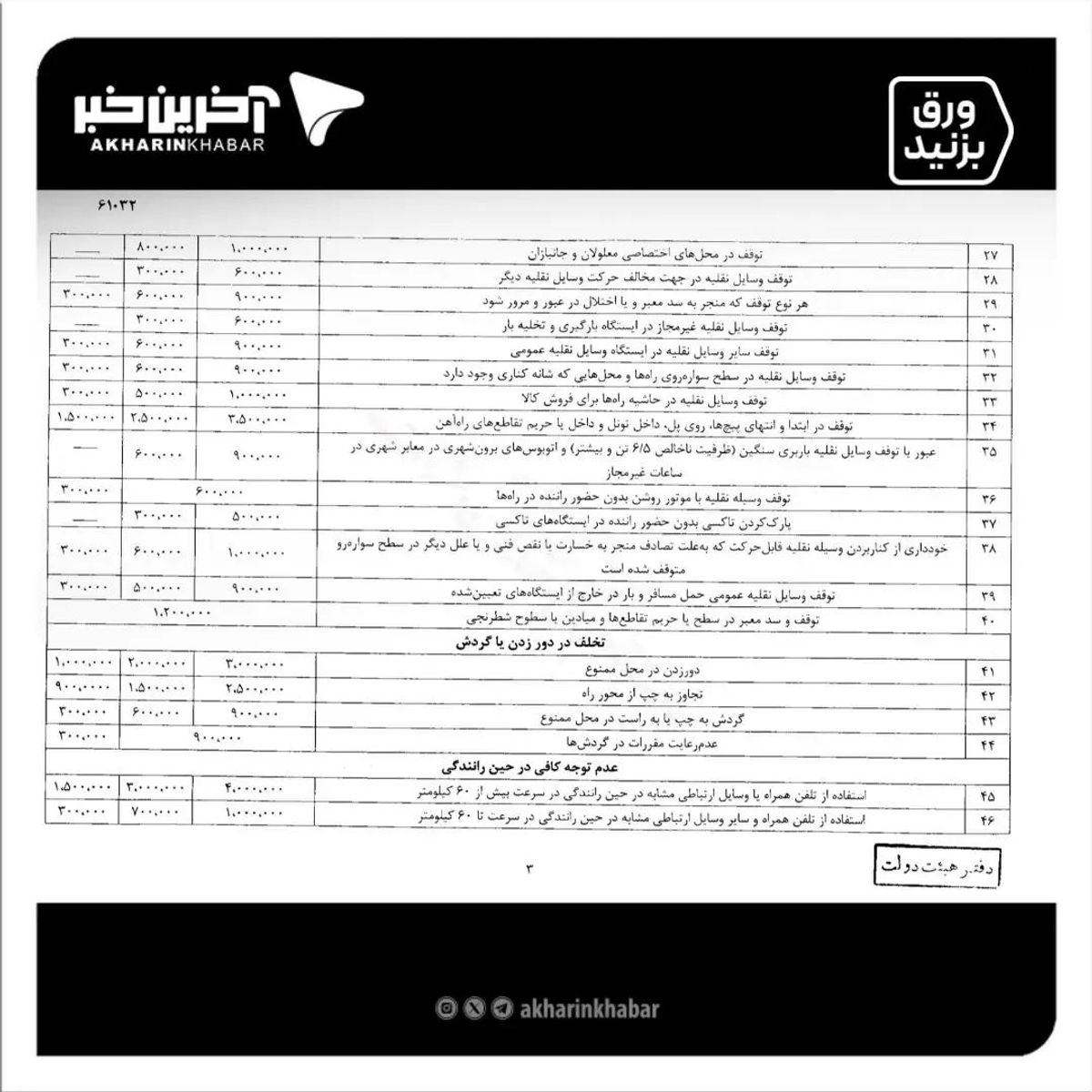 نرخ جدید جرایم رانندگی از کی اعمال می شود؟ | جدول نرخ جرایم رانندگی 1403