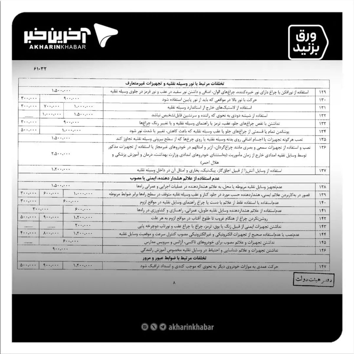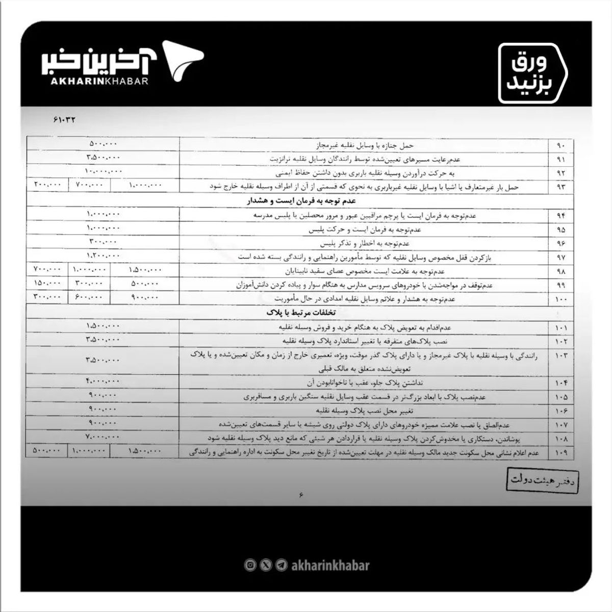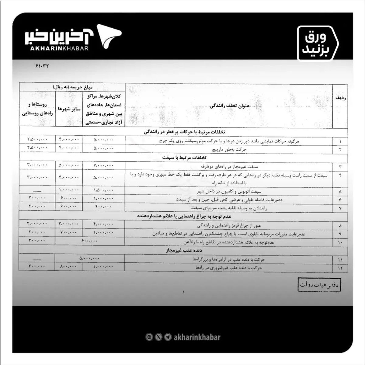 نرخ جدید جرایم رانندگی از کی اعمال می شود؟ | جدول نرخ جرایم رانندگی 1403