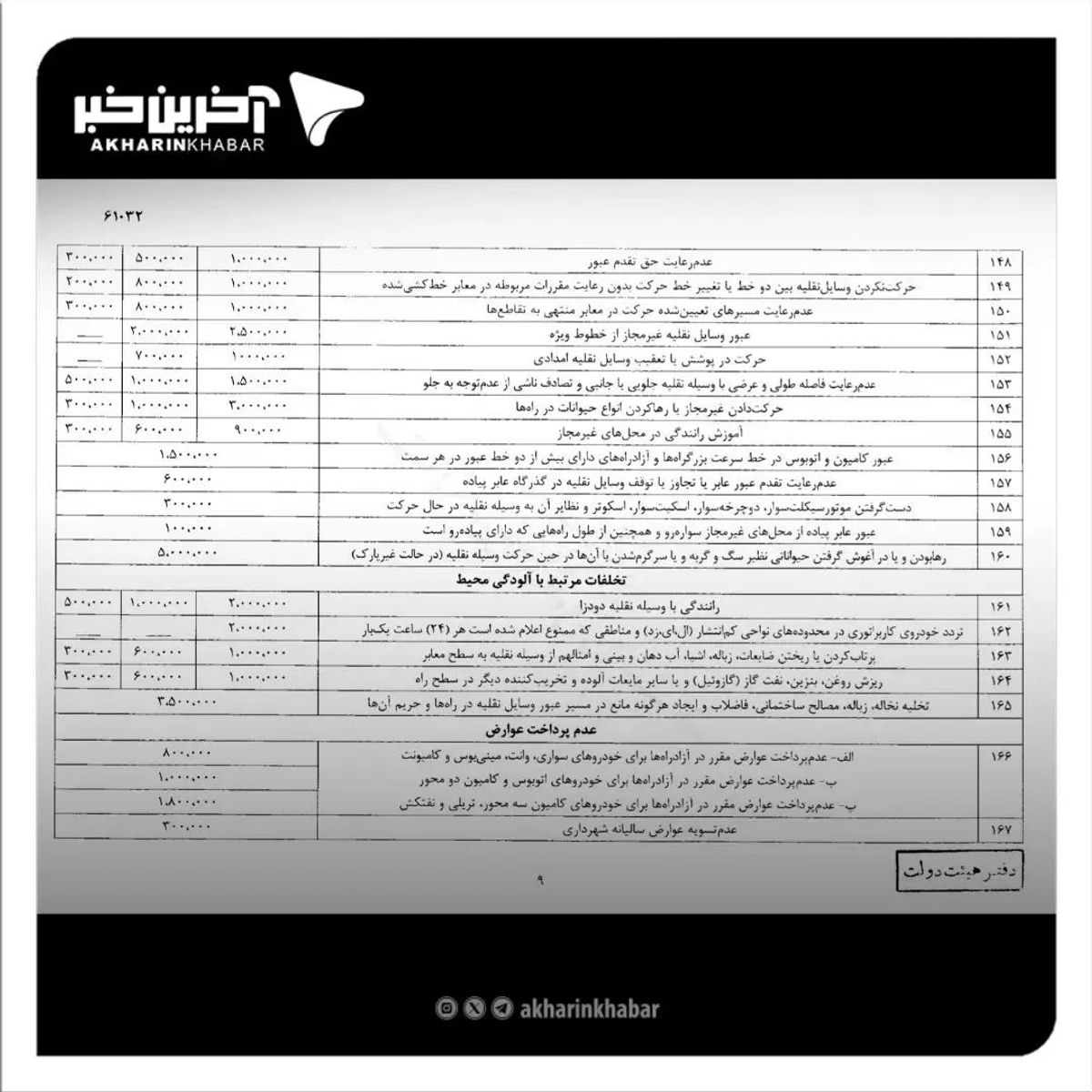 همچنین برخی از جرائم مانند سبقت غیر مجاز که پیش از این ۲۱۰ هزار تومان بوده است به ۷۰۰ هزار تومان افزایش یافته است.