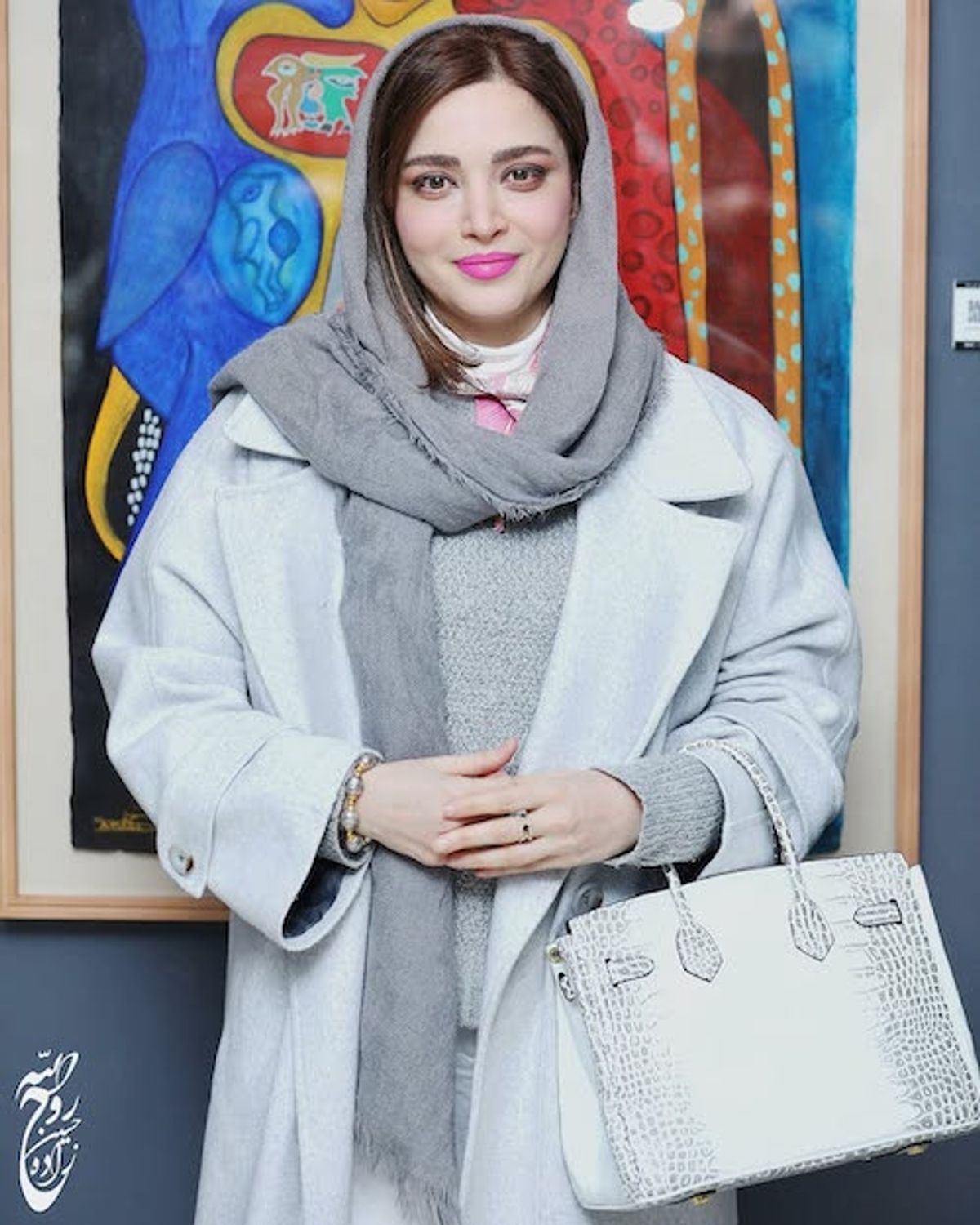 استایل مینیمالیست بهنوش طباطبایی با کیف 40 میلیاردی در نمایشگاه نقاشی