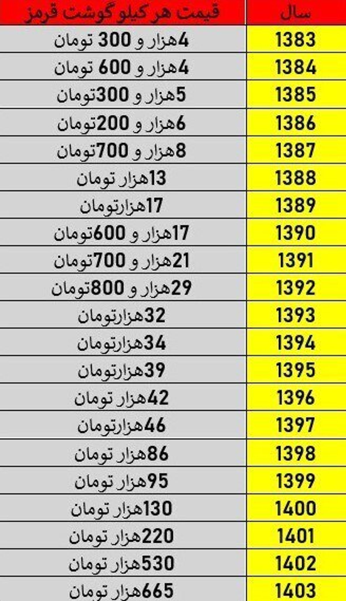 قیمت گوشت قرمز در کدام دولت بیشتر گران شد؟ | مقایسه قیمت گوشت گوسفندی در سال 1383 با 1403