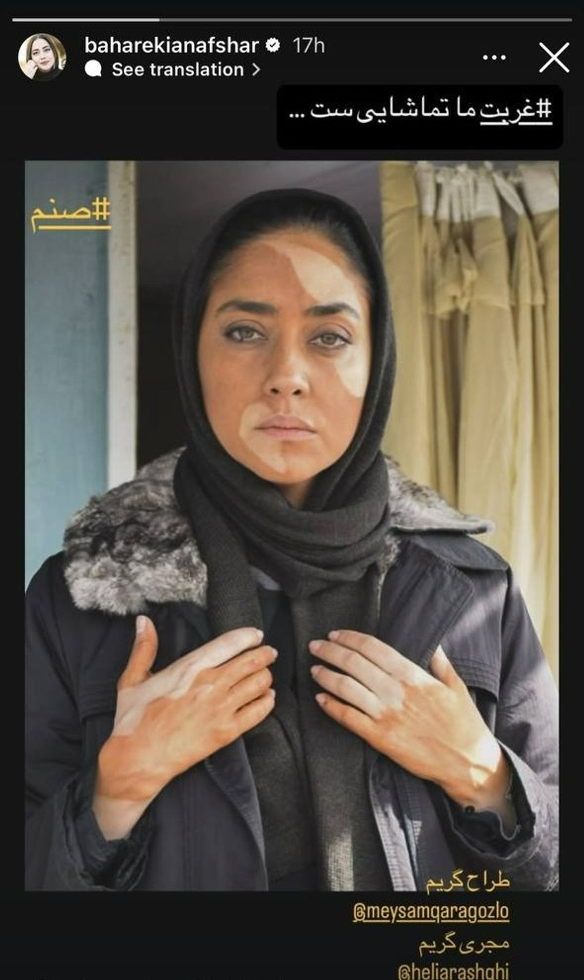 عکسی جدید از بهاره کیان افشار نگرانیهایی را در میان طرفدارانش ایجاد کرده است. بسیاری از افراد با دیدن این تصویر، احتمال بیماری پوستی را مطرح کردهاند. هنوز تاییدی رسمی در مورد وضعیت سلامت او منتشر نشده و طرفداران منتظر اطلاعرسانی دقیق هستند.