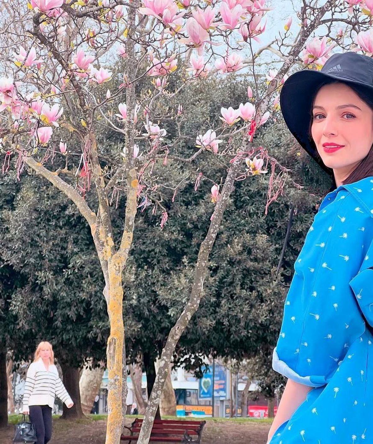 عکس بهاری مهسا حجازی بازیگر نقش شیرین سریال تاسیان در کنار شکوفه ها