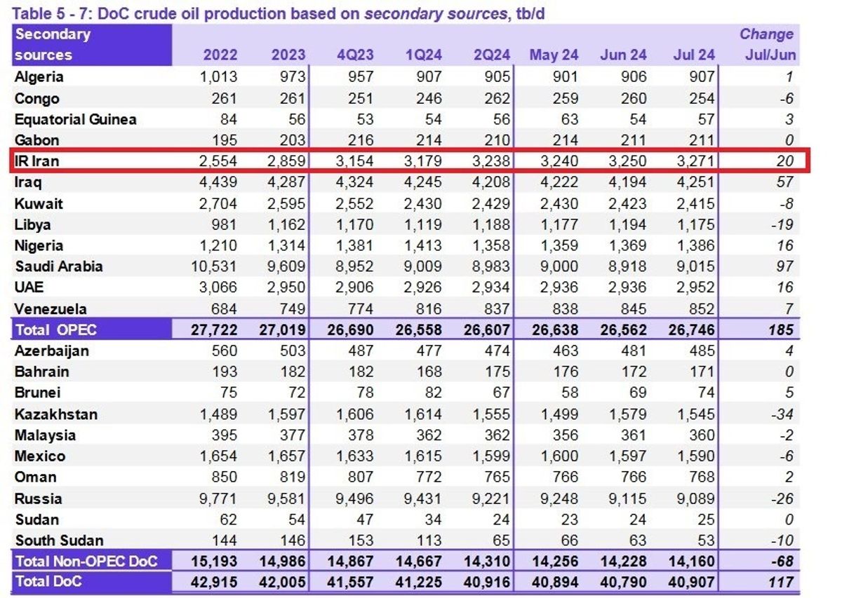جدیدترین گزارش اوپک نشان میدهد، قیمت نفت ایران در ماه جولای به بشکهای ۸۴.۵۷ دلار افزایش یافته است.