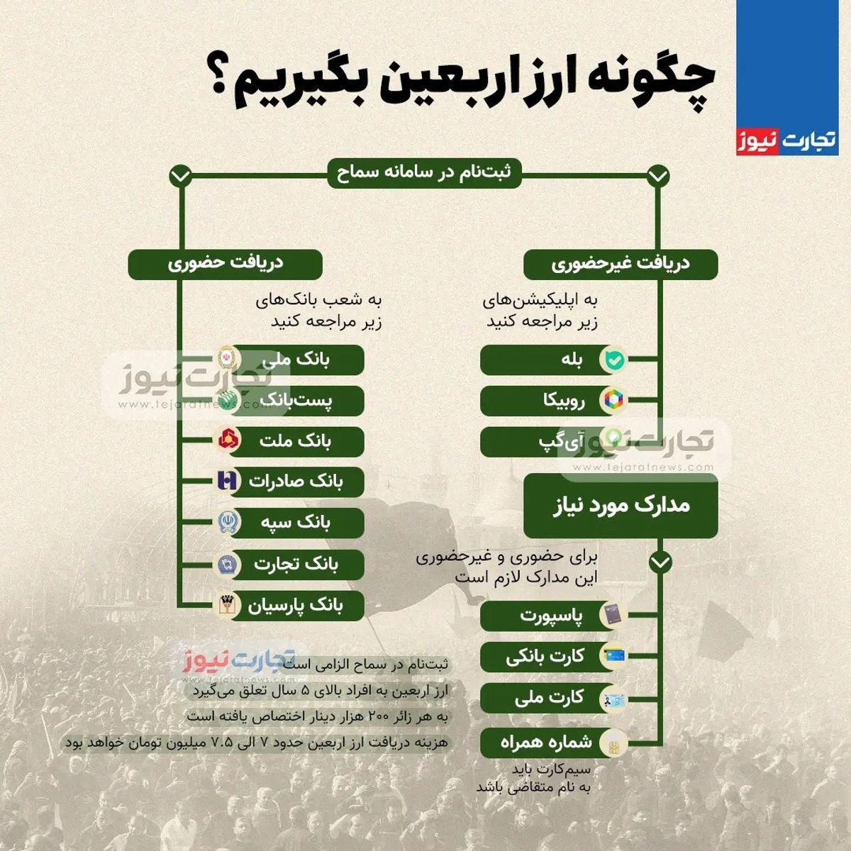 برای دریافت ارز اربعین سال ۱۴۰۳ ابتدا باید در سماح اسم بنویسید و به شعب بانکهای عنوان شده بروید. هزینه خرید ارز اربعین بین ۷ الی ۷.۵ میلیون تومان خواهد بود که در شعبه یا اپلیکیشن باید پرداخت کنید.