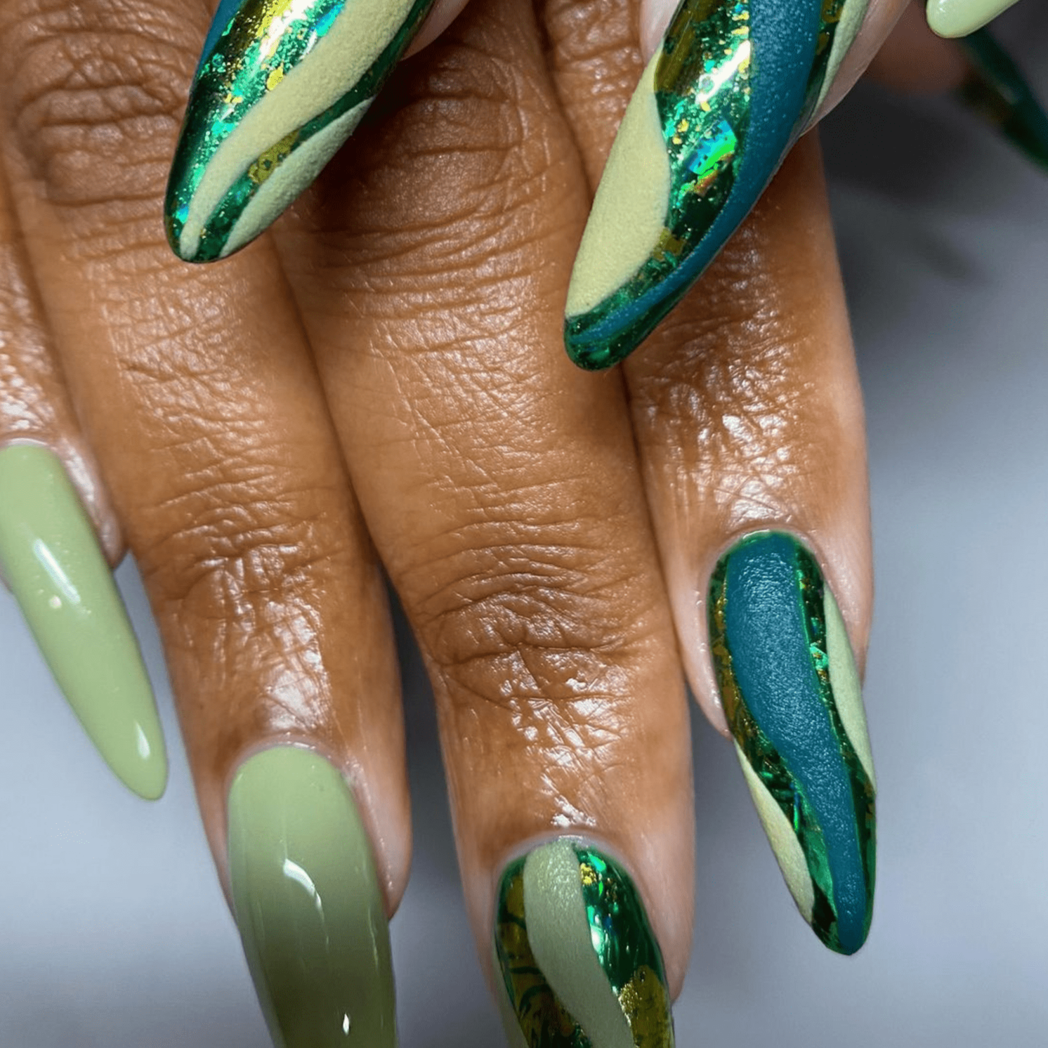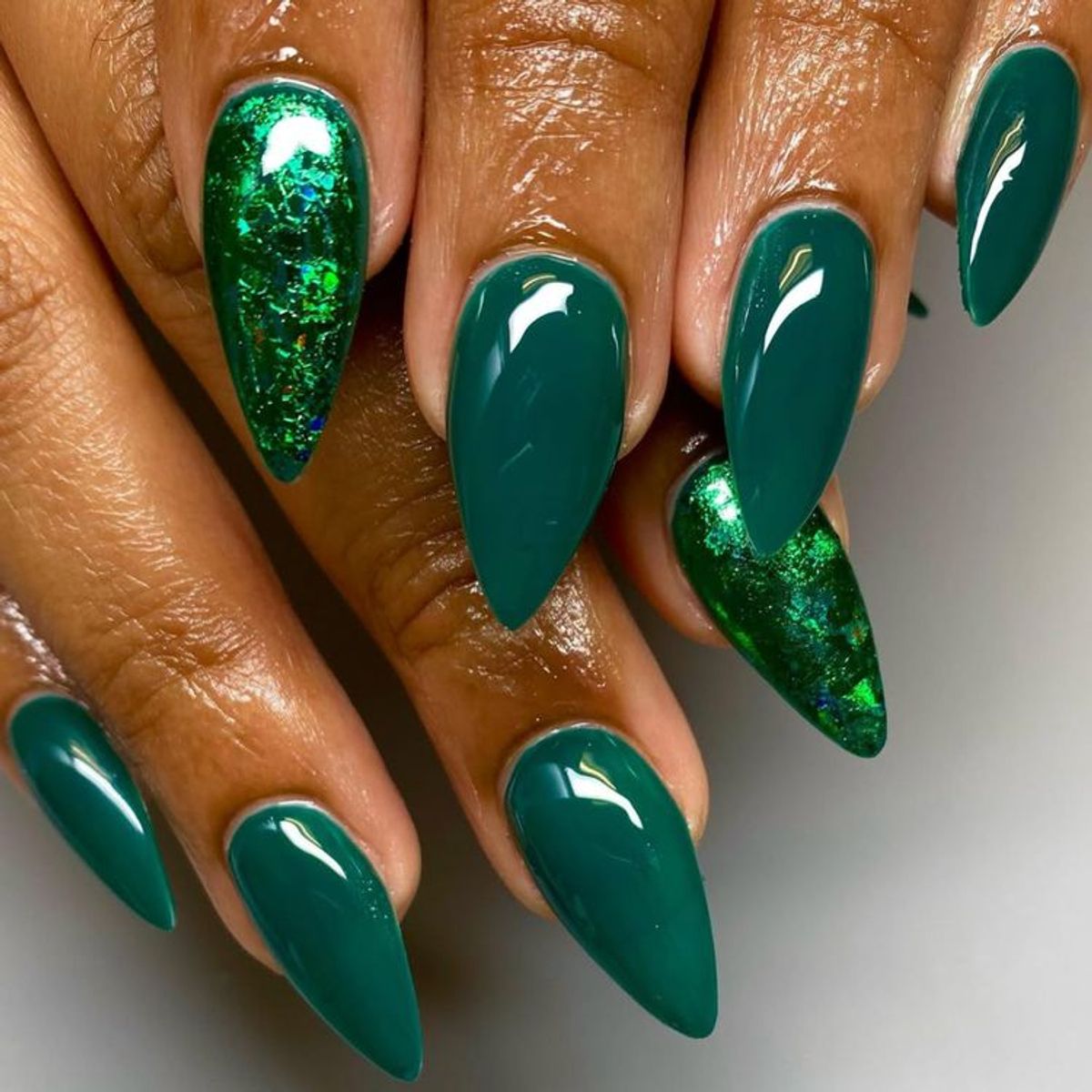 طراحی ناخن امروز 6May | ایده طراحی ناخن زمردی برای یک مانیکور متولد اردیبهشت که حسادتبرانگیز است