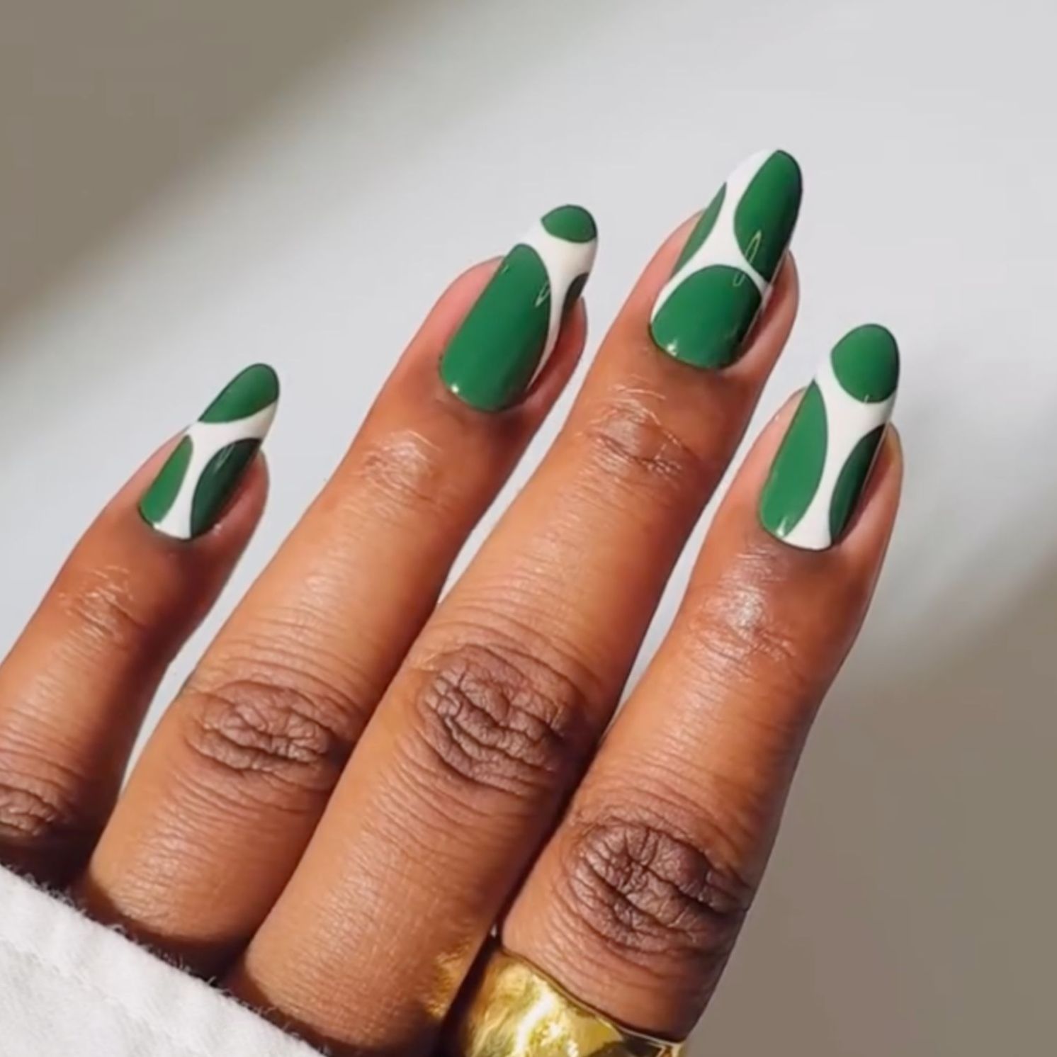 هالهها (Auras) به یکی از محبوبترین سبکهای طراحی ناخن تبدیل شدهاند. وقتی این طراحی با طیفهای سبز انجام میشود، جلوهای تازه و اثیری به وجود میآورد که برای ماه مه (May) کاملاً مناسب است. برای رسیدن به این ظاهر، یک اسفنج ناخن را با مقداری لاک سبز نعنایی در وسط و حلقهای از سبز تیره در اطراف آن رنگآمیزی کنید. سپس اسفنج را روی ناخنها بزنید و لبهها را با یک قلمموی زاویهدار آغشته به استون اصلاح کنید.