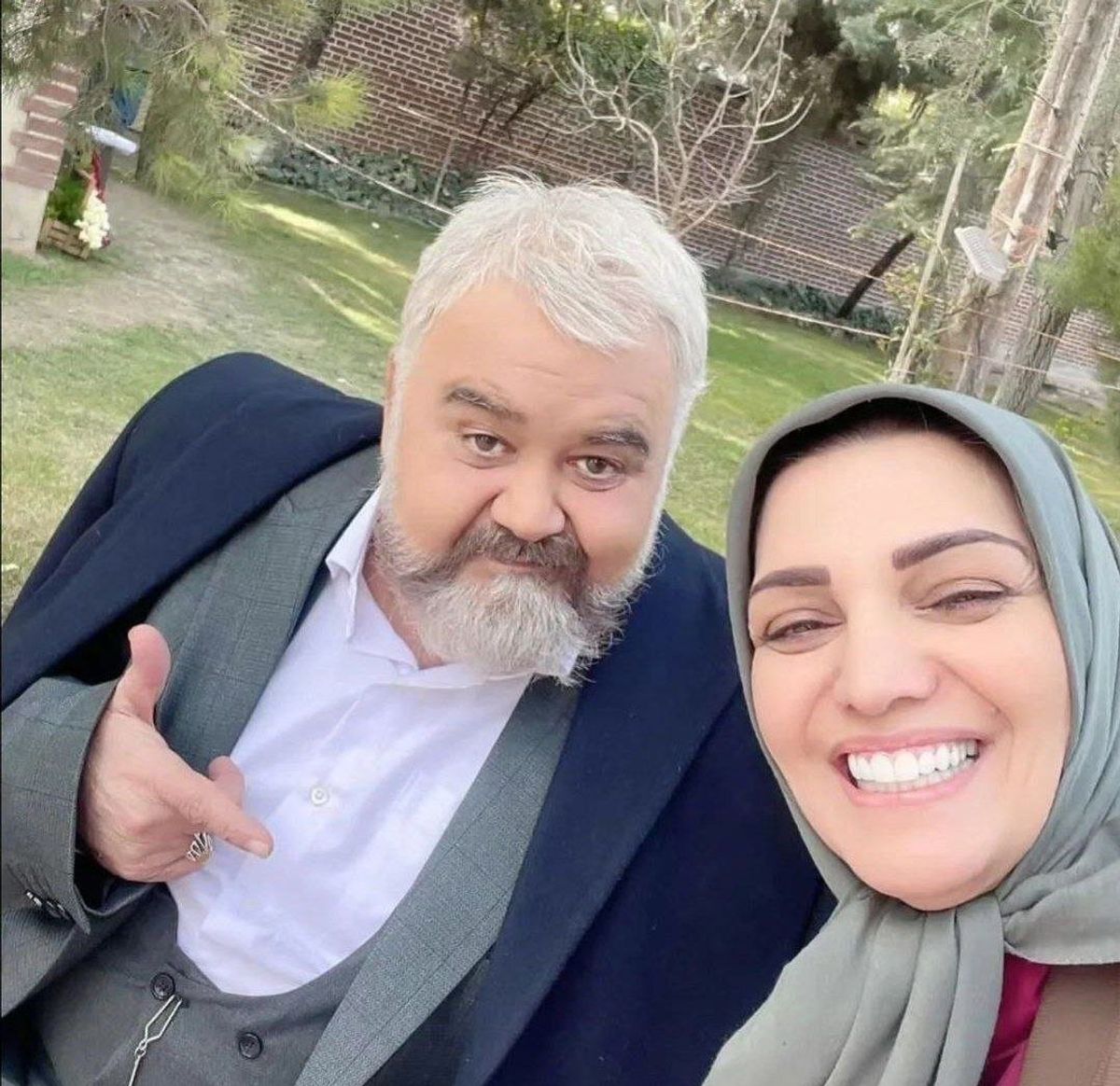 عکس جدیداکبر عبدی با الهام پاوه نژاد در پشت صحنه یک سریال| مدل جدید ریشهای اکبر عبدی
