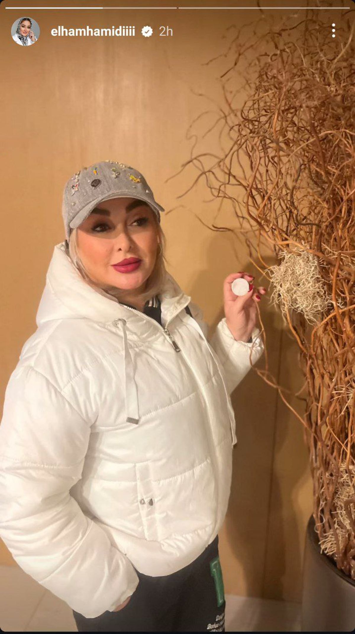 استایل جدید الهام حمیدی در کنار لانه پرندگان| تغییر چهره الهام حمیدی در ۴۷ سالگی