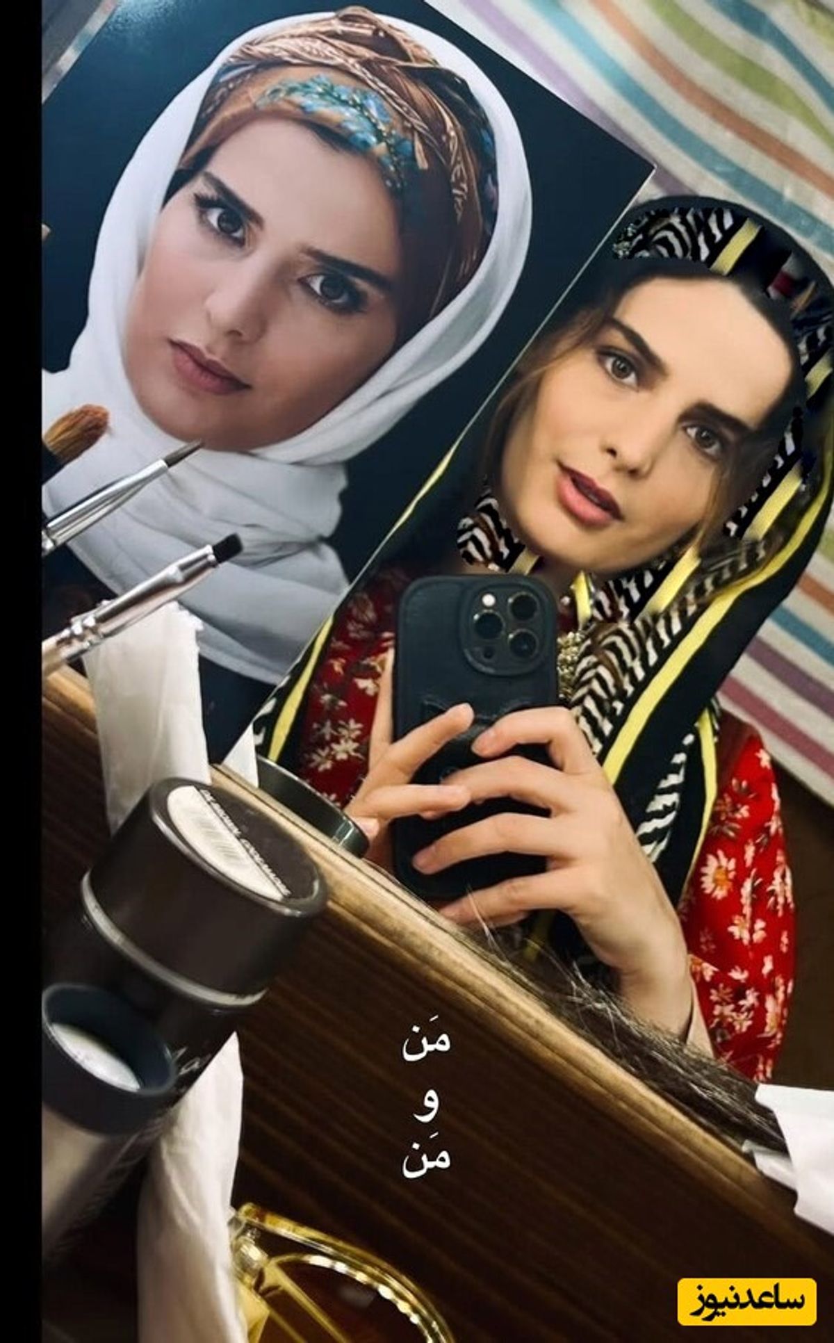 چهره طبیعی غزاله اکرمی در اتاق گریم سریال «سوجان» + سلفی هنری بازیگر در آینه