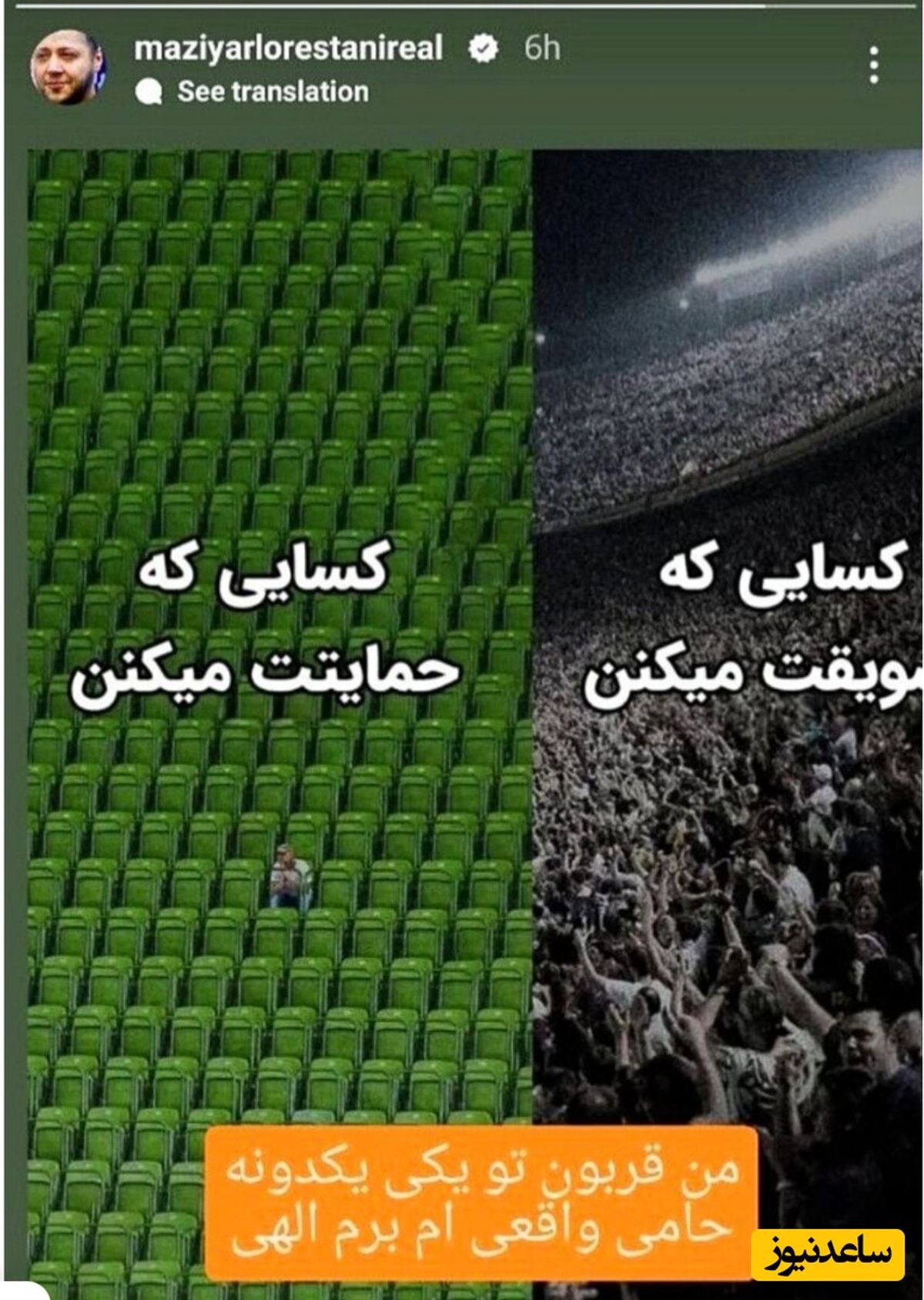 مازیار لرستانی در اینتساگرام خود استوری جدیدی منتشر کرده است و به حامی واقعیاش اشاره میکند.
