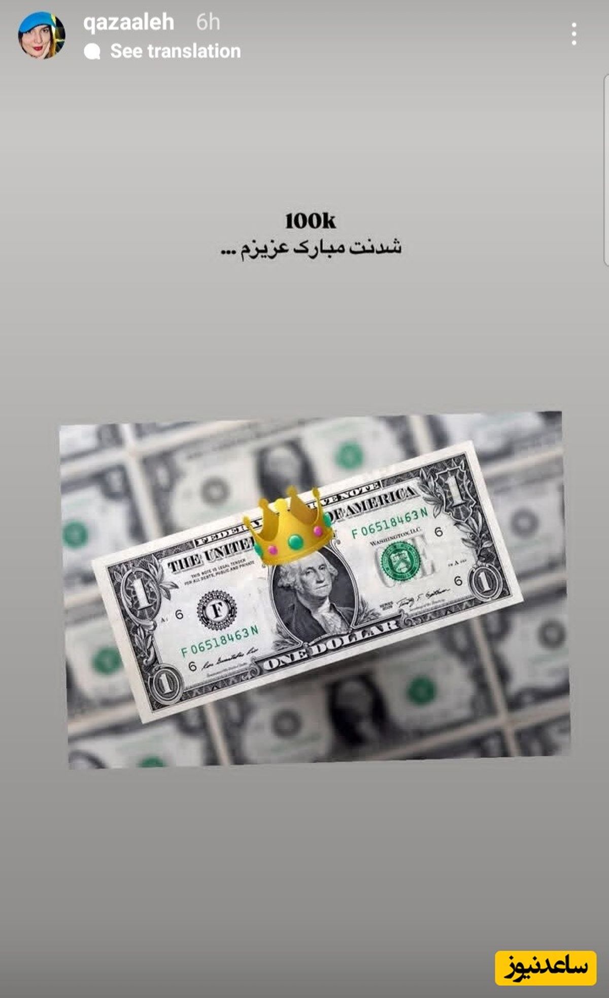 غزاله اکرمی بازیگر نقش سوجان با انتشار یک استوری به دلار 100 هزار تومانی واکنش جالبی داد.