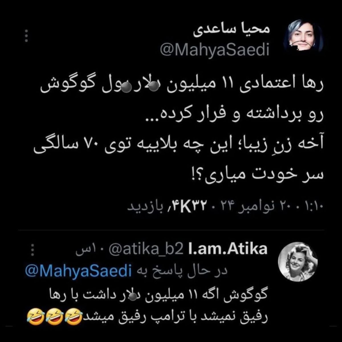 رها اعتمادی به واسطهٔ کلاهبرداری یازده میلیون دلاری خود و تیمش شامل بابک و ندا سعیدی از گوگوش نمیتواند وارد امریکا شود.