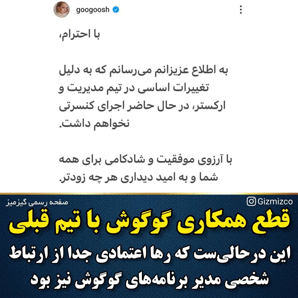گوگوش همچنین اعلام کرده است که این رابطه و همکاری به طور کامل به پایان رسیده است.