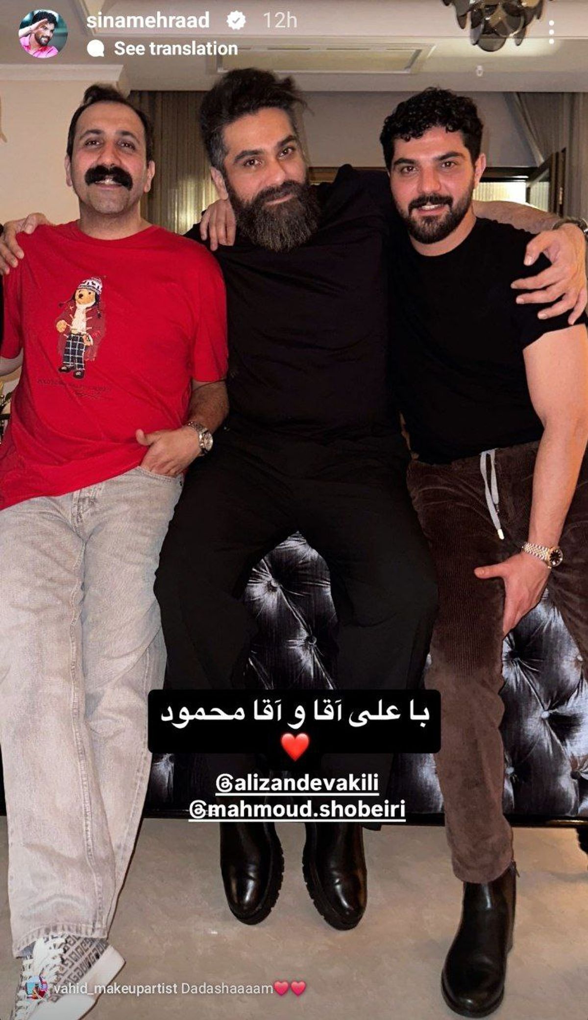 استوری سینا مهراد به همراه علی زندوکیلی| رابطه نزدیک آقای بازیگر با آقای خواننده