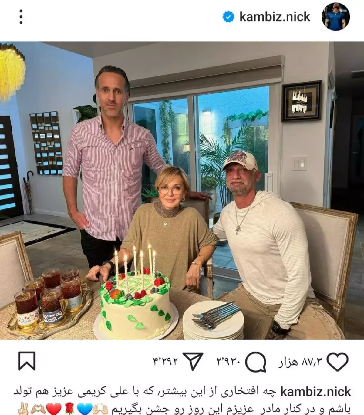 علی کریمی و گوگوش در جشن تولد کامبیز، پسر این خواننده حاضر بودند و کامبیز قربانی این عکس را در صفحهی اینستاگرامش منتشر کرد.