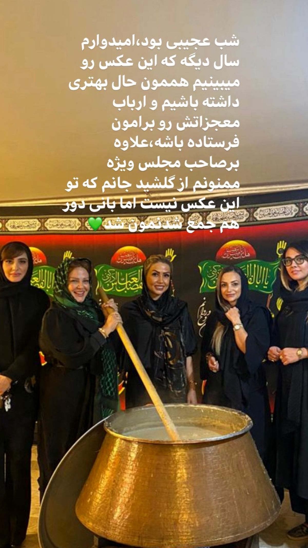 بهاره رهنما عکسی از خود و دوستانش پای دیگ نذری محرم منتشر کرده است.