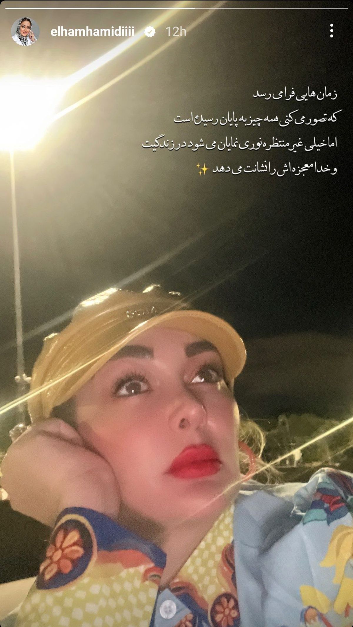 الهام حمیدی تصویری از خود در شب منتشر کرد و از معجزهای که برایش رخ داده است نوشت.