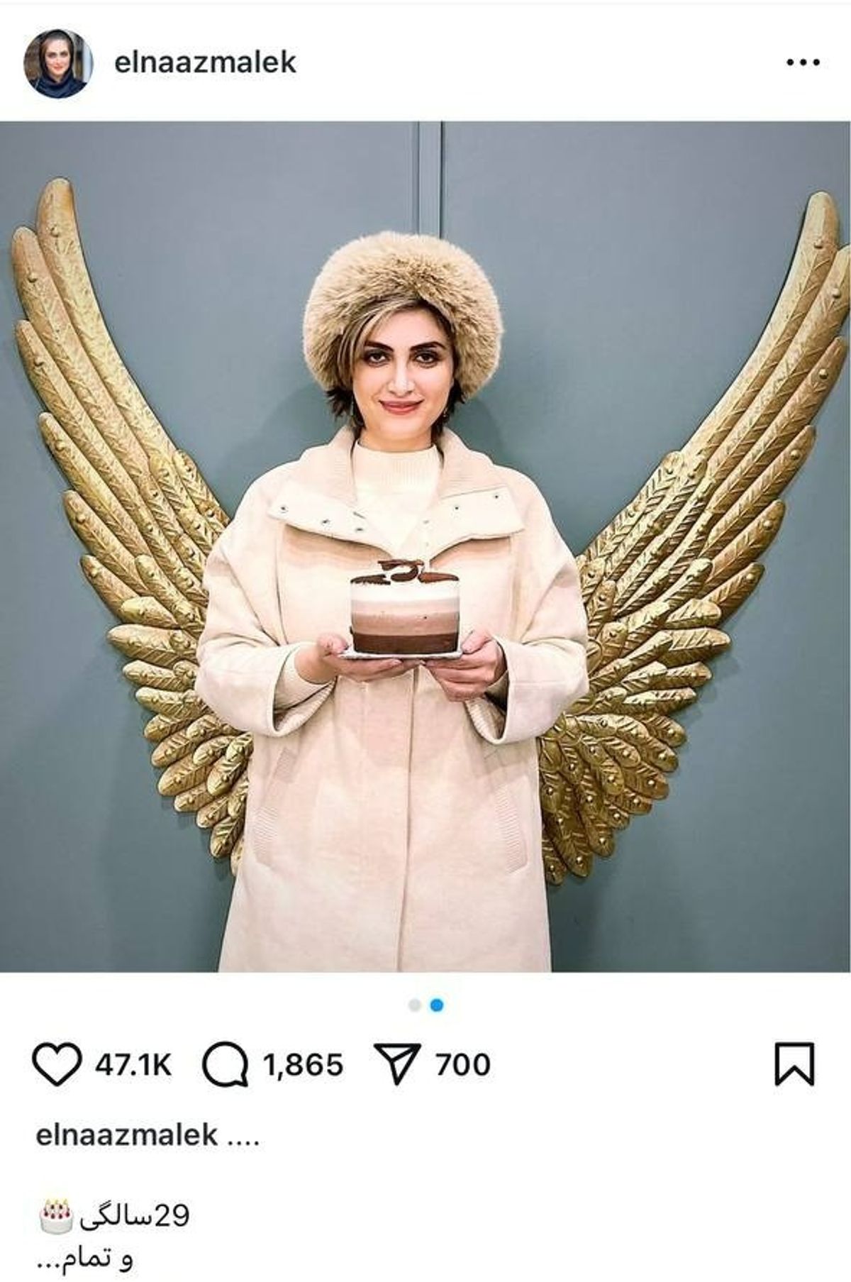 الناز ملک آیسان سریال سقوط که در سه فصل سریال زخم کاری کنار جواد عزتی درخشید و اکنون در نقش سیما زخم کاری 4 مجازات یکی از تاثیرگذارترین ها در روند داستان است، عکسی از تولد 29 سالگیش را با تیپ و استایل زمستانی به اشتراک گذاشت و کوتاه نوشت: