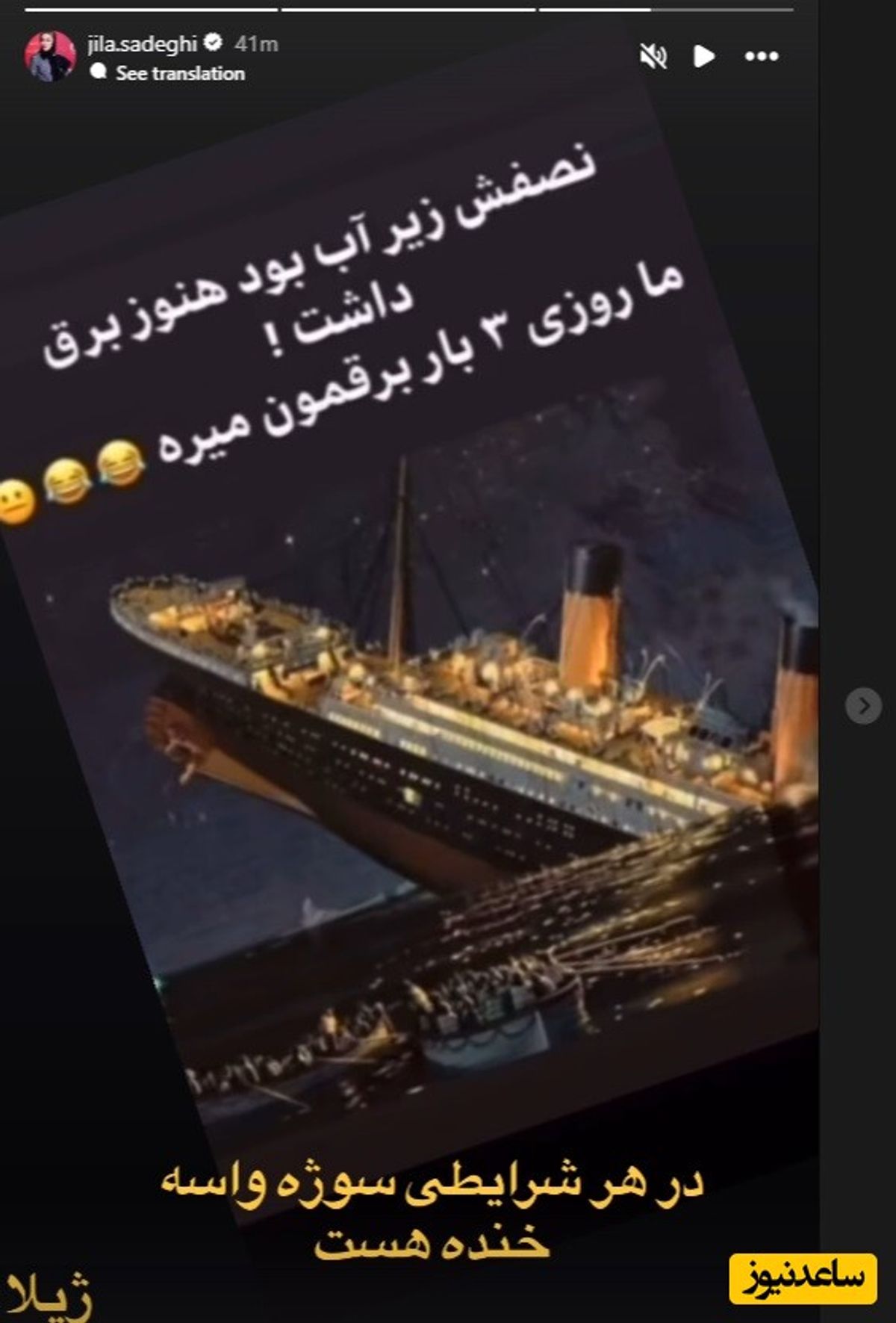 ژیلا صادقی در انتقاد از قطعی برق: تایتانیک نصفش زیر آب بود و برق داشت!