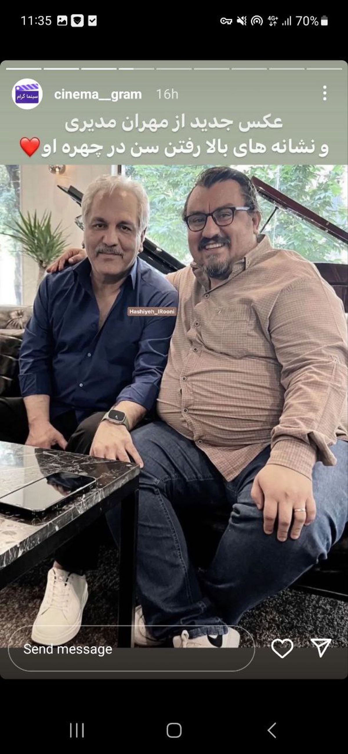تصویری از مهران مدیری منتشر شد که در این عکس به خوبی پیری مهران مدیری مشخص است.