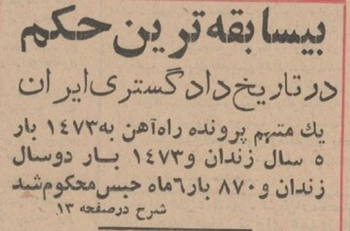 روزنامههای ایران ۶۰ سال پیش خبری از یک حکم بی سابقه در تاریخ دادگستری ایران منتشر کردند.
