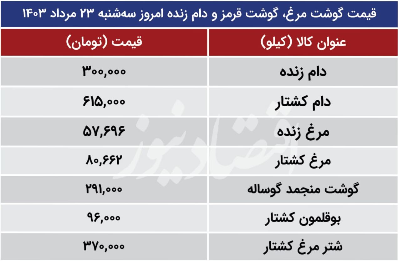 کاهش قیمت دام زنده امروز | مرغ گران شد | قیمت جدید دام زنده امروز چهارشنبه 24 مرداد 1403