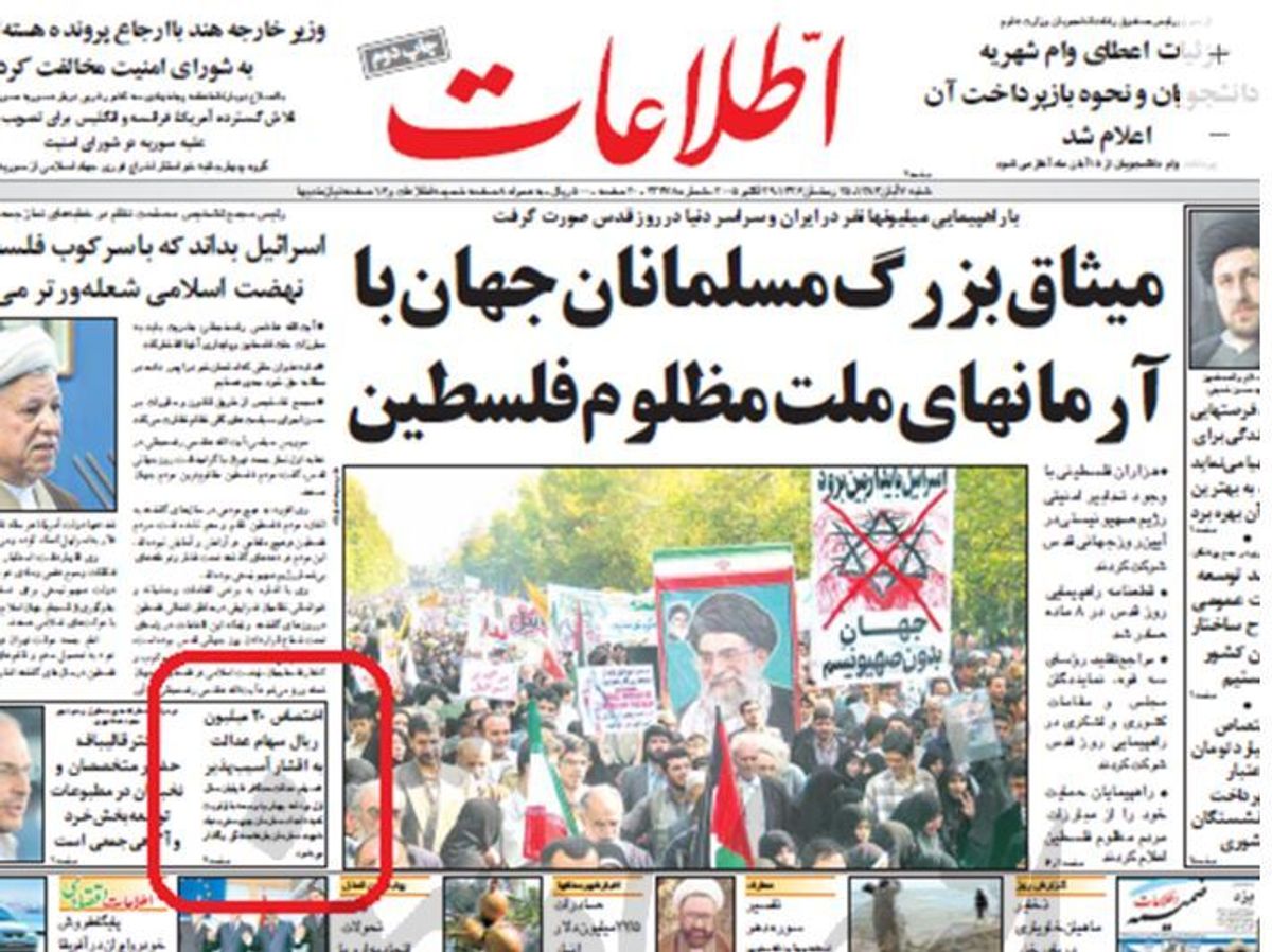 روزنامه اطلاعات هفتم آبان ماه سال ۱۳۸۴ یکی از تیترهای اصلی خود در صفحه یک را به اعطای ۲۰ میلیون ریال سهام عدالت به اقشار آسیبپذیر اختصاص داد.