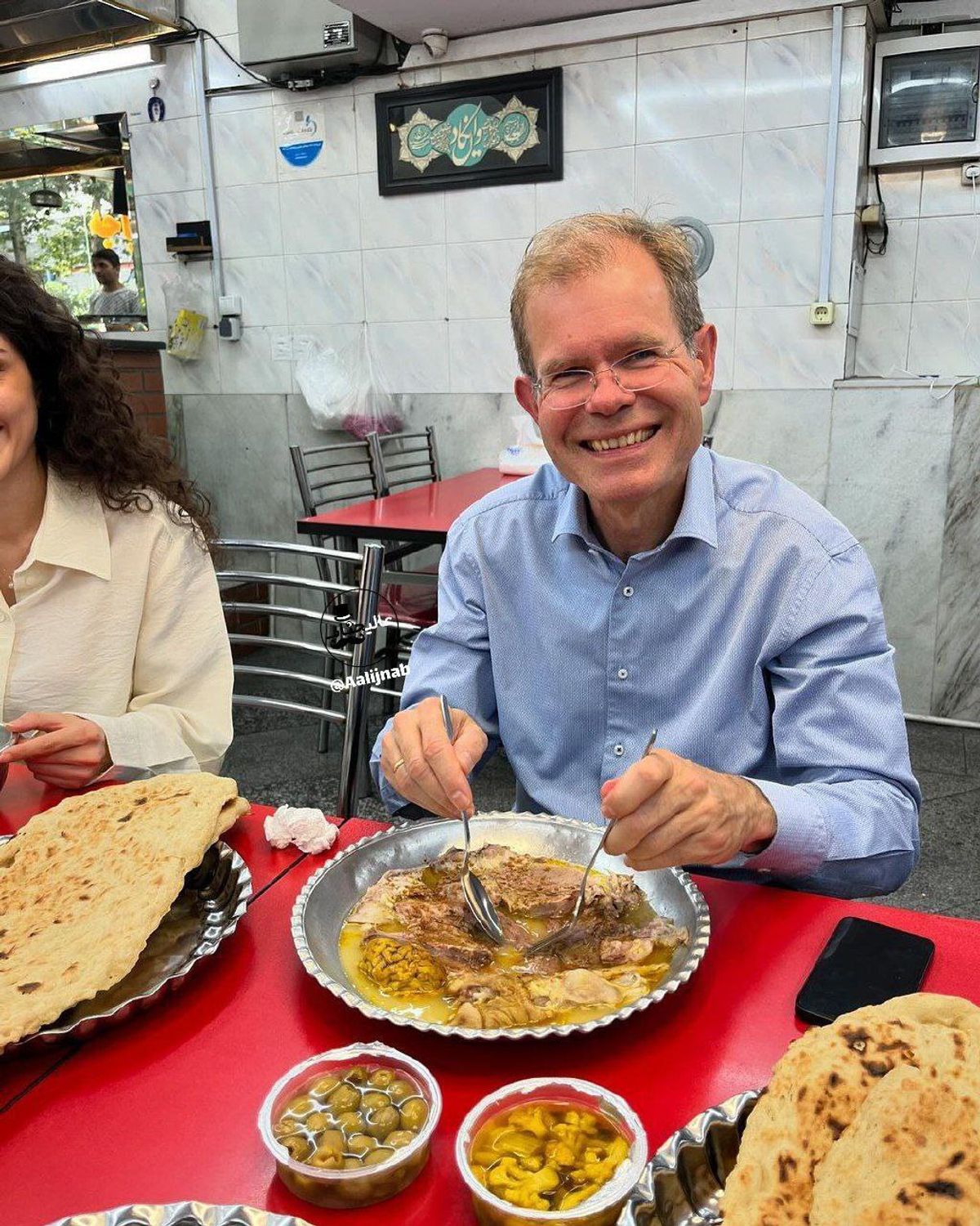 سفیر نروژ در ایران برای اولین بار کله پاچه خورد | خوردن کله پاچه آخرین ماموریت کاری سفیر نروژ +تصاویر
