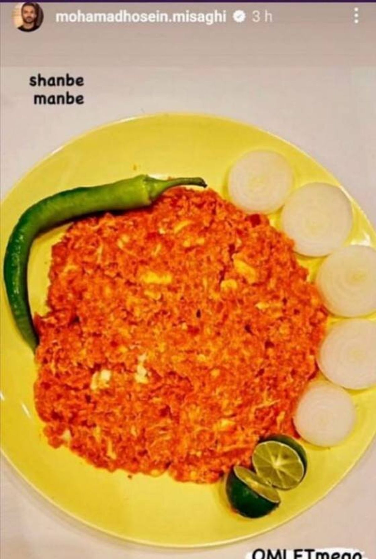 محمدحسین میثاقی، مجری برنامه فوتبال برتر، پس از چند روز سکوت اینستاگرامی، تصویری از بشقاب املت را منتشر کرده، با شرح «شنبهمنبه» که ظاهرا حاکی از بی اعتنایی او نسبت به اتهامات مطروحه است.