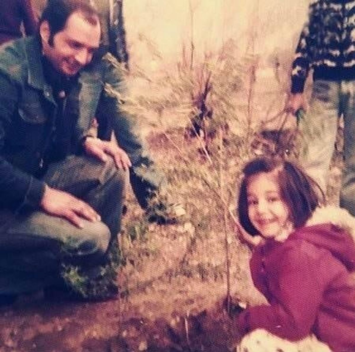 درختکاری هدیه تهرانی در کنار پدرش در دهه 50| عکسی از کودکی هدیه تهرانی در حال کاشت درخت