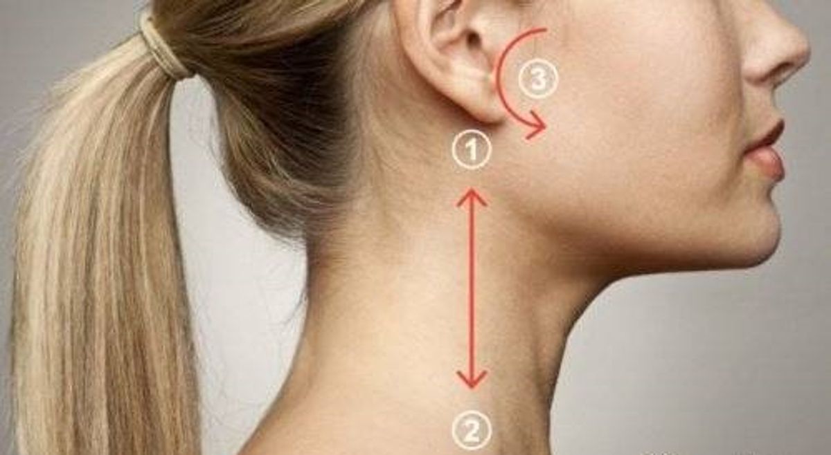 از خط اول تا دوم شامل انتهای لاله ی گوش تا ترقوه میشود ، یک فشار ملایم، هنگامی که دست خود را در طول این خط قرار داده اید وارد کنید ، این حرکت را 10 مرتبه به مدت3 دقیقه در دو طرف گردن خود انجام دهید .