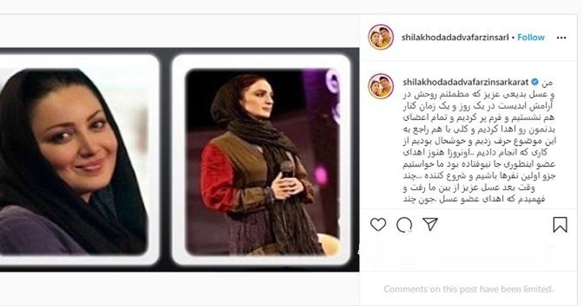 شیلا خداداد در صفحه اینستاگرامش نوشت: "من و عسل بدیعی عزیز که مطمئنم روحش در آرامش ابدیست در یک روز و یک زمان کنار هم نشستیم و فرم پر کردیم و تمام اعضای بدنمون رو اهدا کردیم و کلی با هم راجع به این موضوع حرف زدیم و خوشحال بودیم از کاری که انجام دادیم ..اونروزا هنوز اهدای عضو اینطوری جا نیوفتاده بود ما خواستیم جزو اولین نفرها باشیم و شروع کننده ...