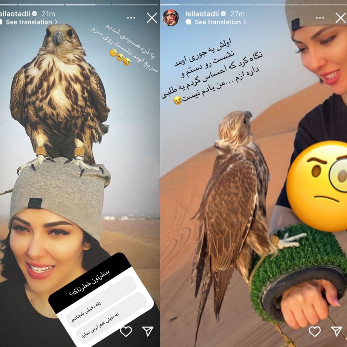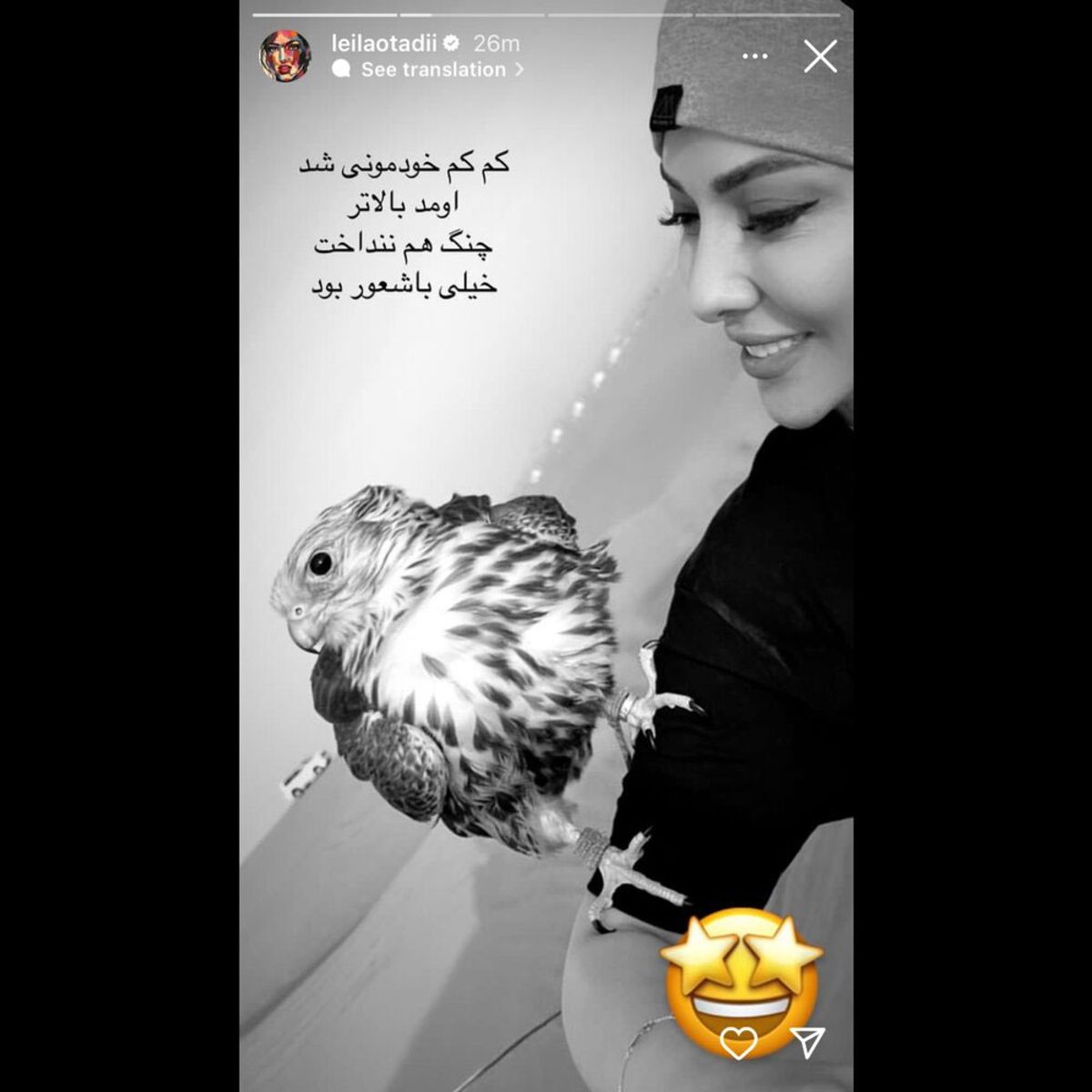 لیلا اوتادی که به امارات سفر کرده، در صفحه اینستاگرام خود عکسی از خودش که شاهین روی سر و بدنش قرار دارد منتشر کرده است. یکی از صفحات هواداری لیلا اوتادی در فضای مجازی نوشته لیلا اوتادی هر جا برود آنجا زیباست!