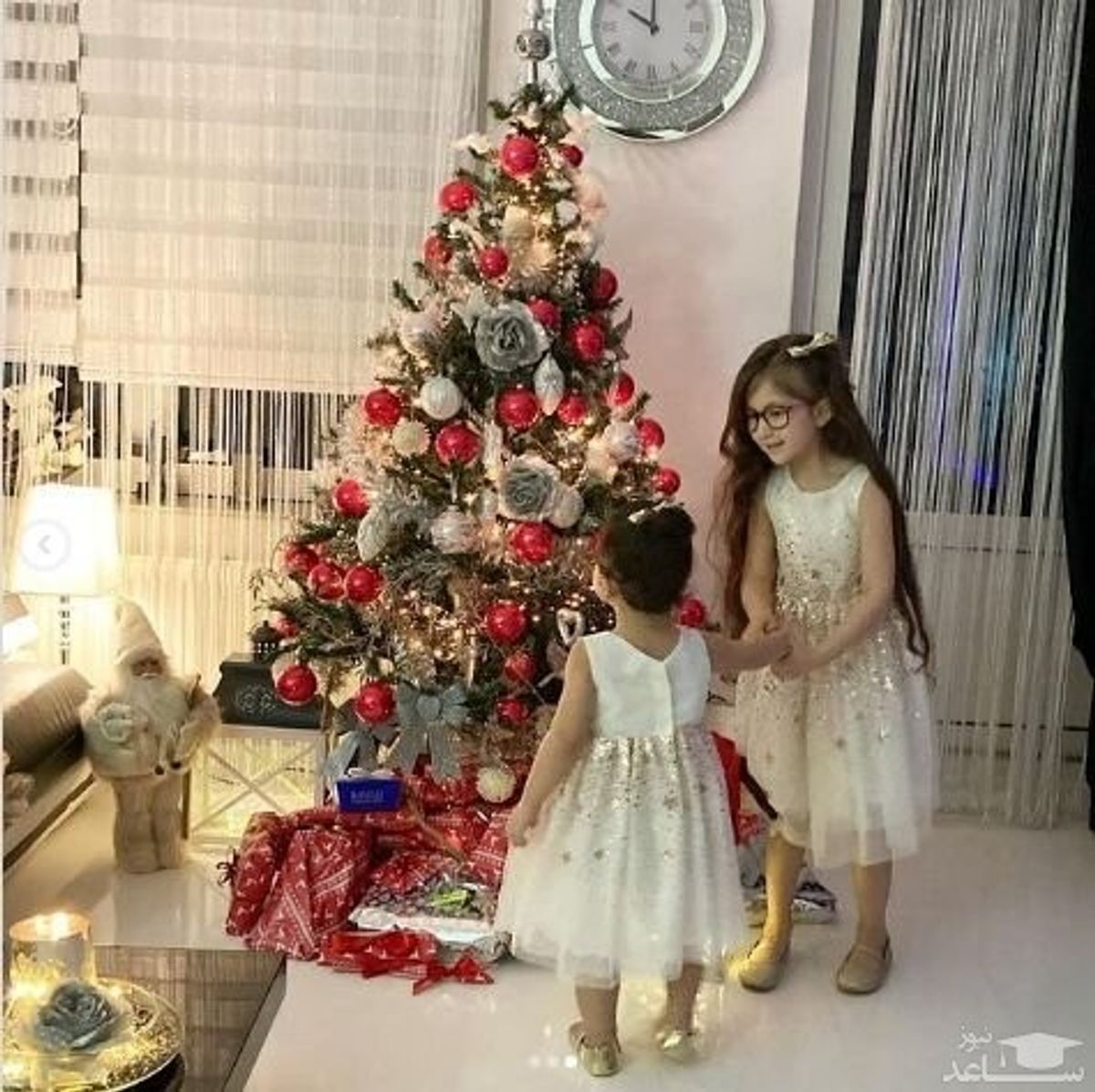 شاهرخ استخری | دو فرزند شاهرخ استخری | دو فرزند شاهرخ استخری در کنار درخت کریسمس | درخت کریسمس شاهرخ استخری